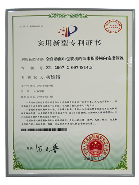 • 全自动湿巾包装机的纸巾折叠横向输出装置